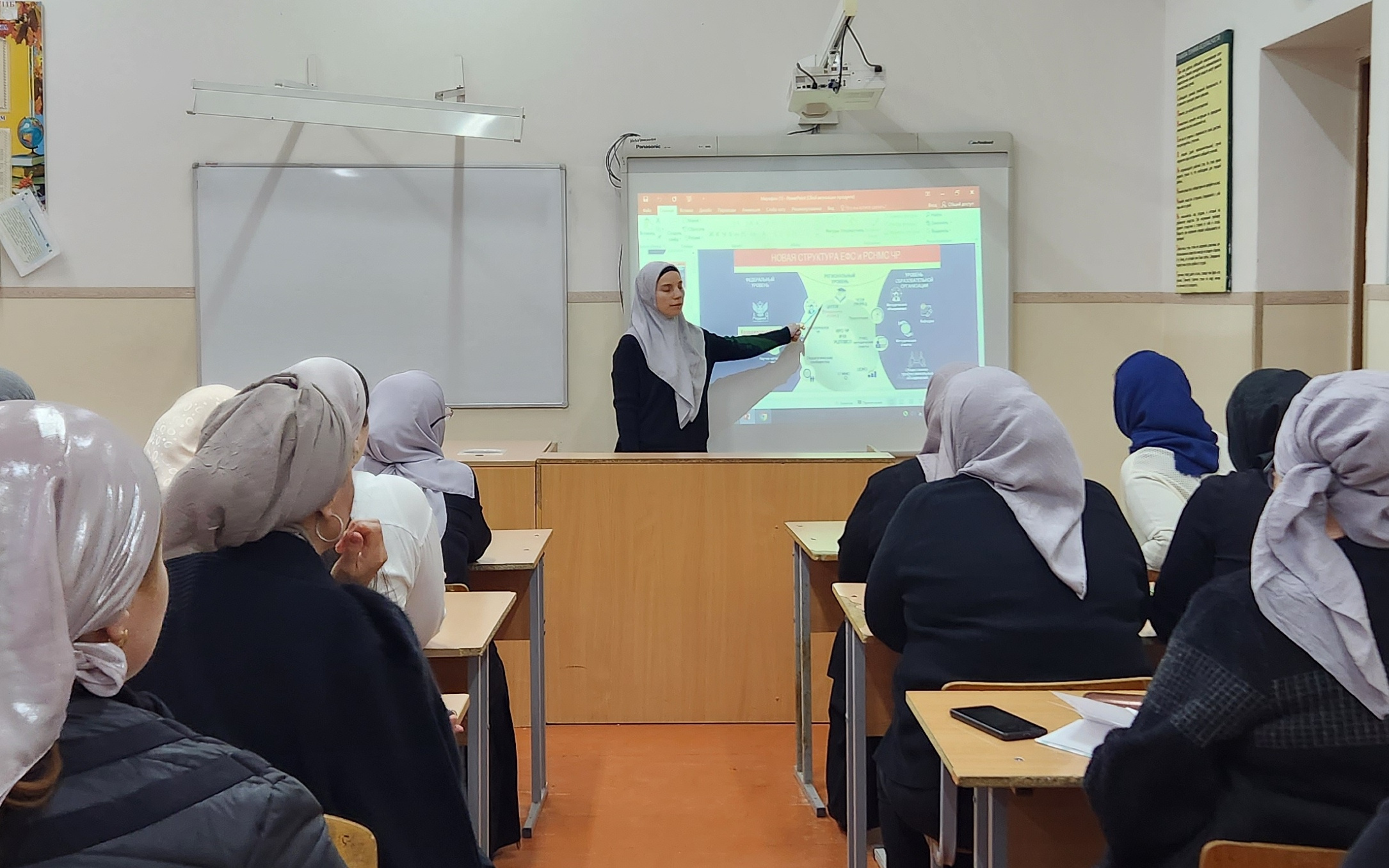 Заместитель директора по УР Наибова Л.Х. ознакомила участников семинара с информацией о создании и функционировании региональной системы научно-методического сопровождения педагогических работников и управленческих кадров Чеченской Республики.