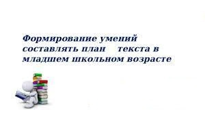 Формирование умений составлять план текста – это умение ориентироваться в структуре текста и воспроизводить его.