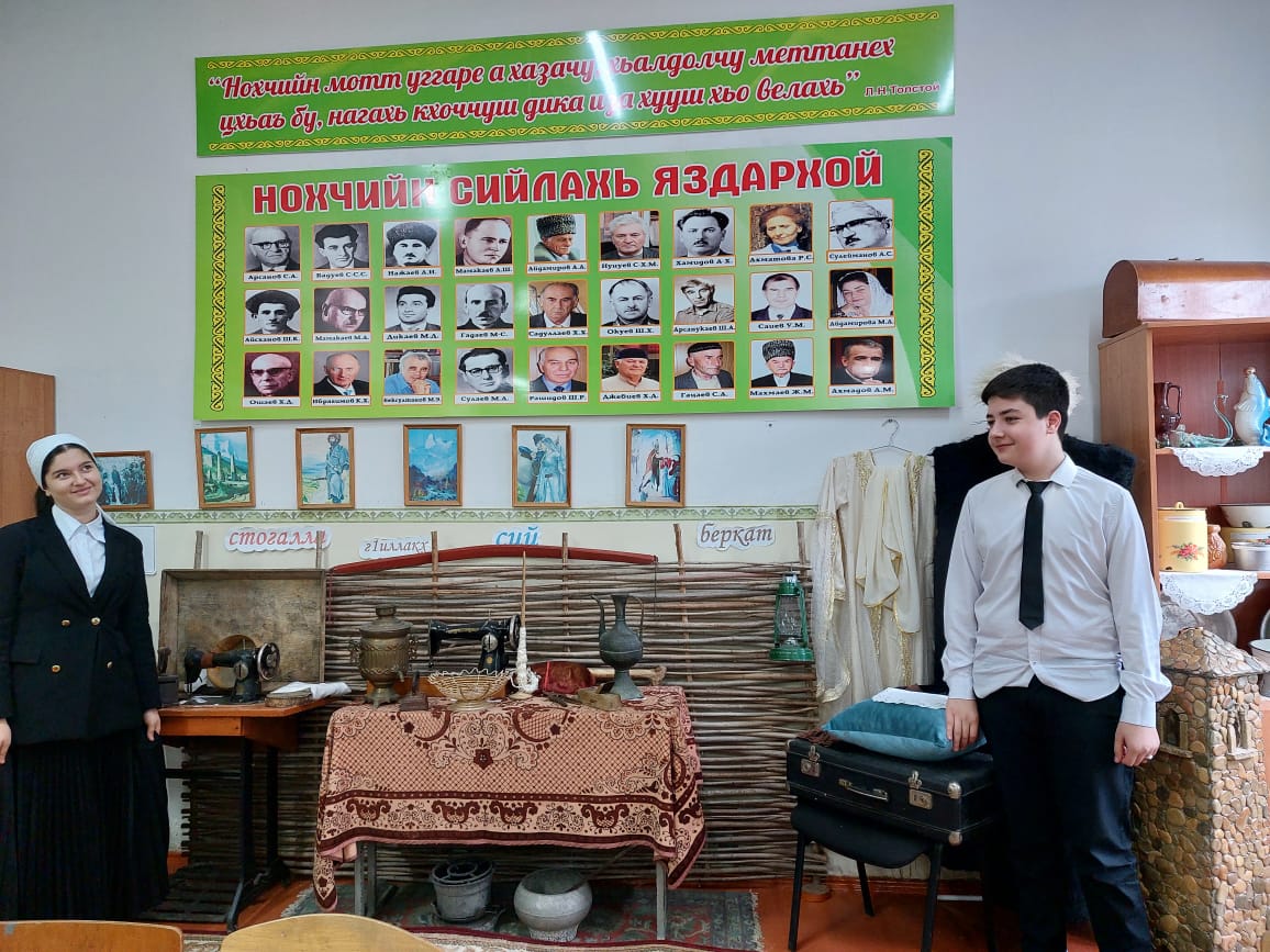 19.02.2025Руководителем музея «Дайн кхерч» Арзуевой Н.Х. было проведено внеклассное мероприятие на тему «Традиции и обычаи вайнахов».