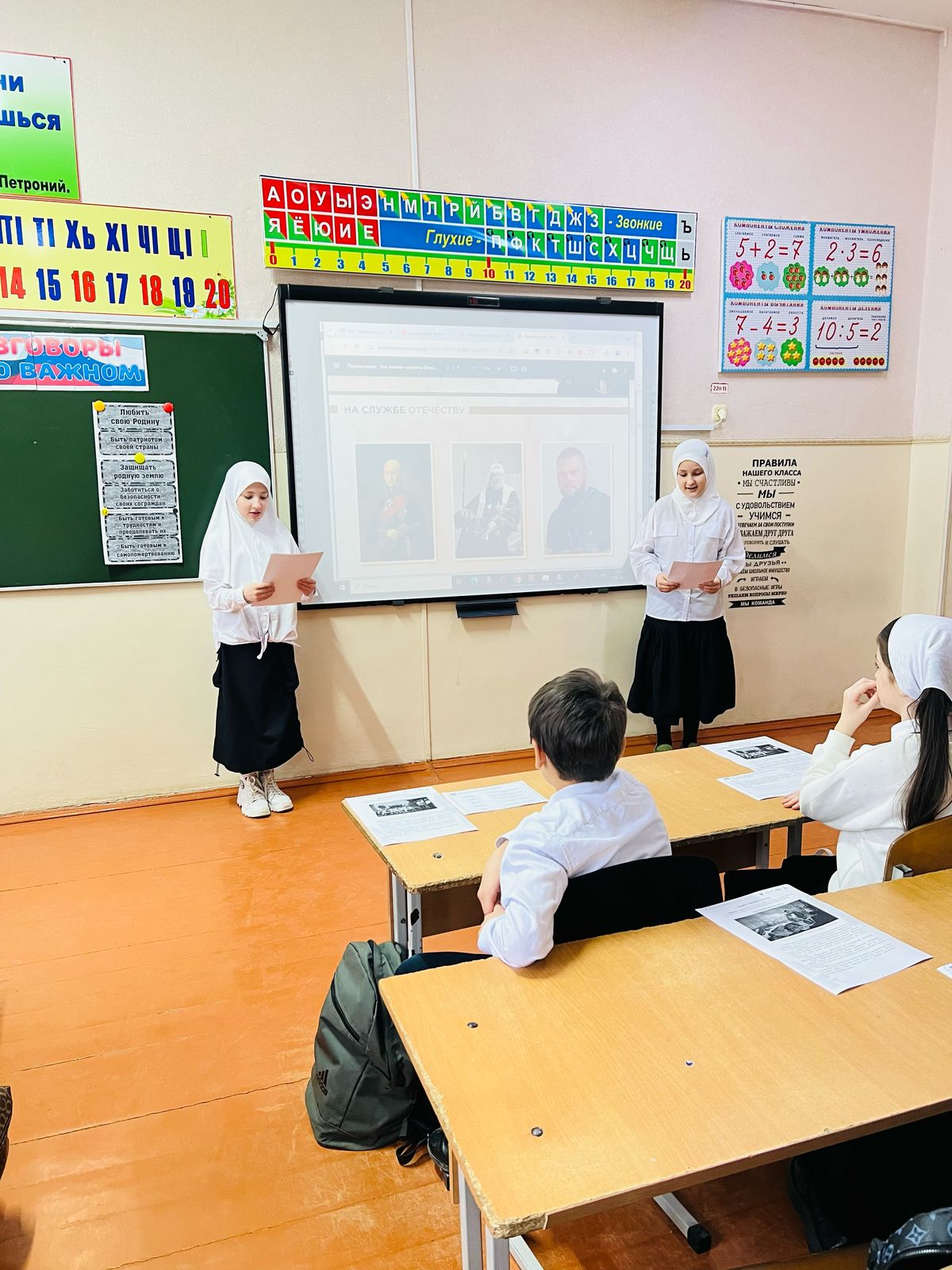 17.02.2025Классным руководителем 4 А класса Байсагуровой З.М-Ш. проведен урок Разговоры о важном на тему «Что значит служить отечеству».
